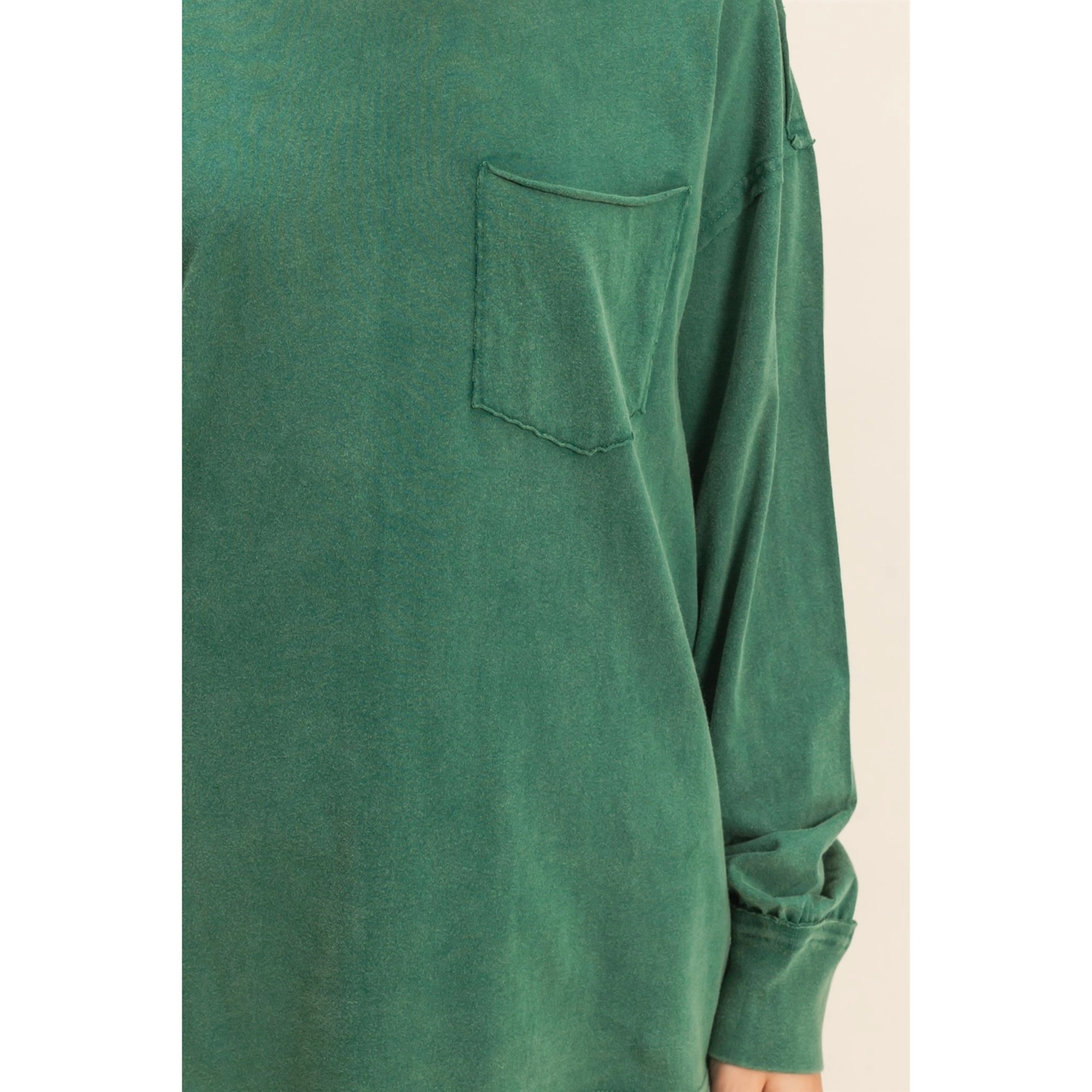 Elevate Your Casual Wardrobe With This Oversized Washed Long Sleeve Pocket Tee. Featuring A Relaxed Fit And A Stylish Chest Pocket, This Tee Is Perfect For Layering Or Wearing On Its Own. Made From A Soft, Comfortable Fabric, It Offers All-Day Comfort And A Laid-Back Look. The Long Sleeves And Simple Design Make It A Versatile Addition To Any Closet, Ideal For Both Lounging And Casual Outings.