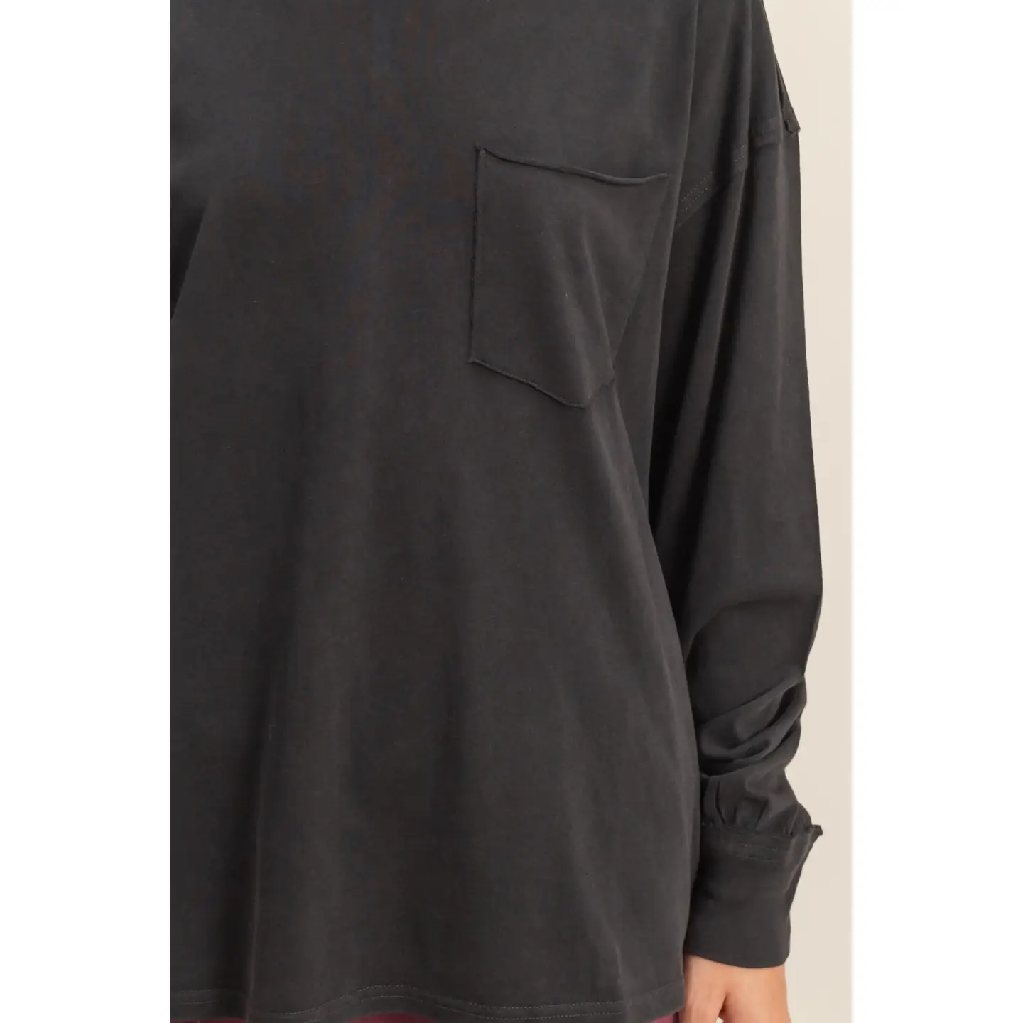 Elevate Your Casual Wardrobe With This Oversized Washed Long Sleeve Pocket Tee. Featuring A Relaxed Fit And A Stylish Chest Pocket, This Tee Is Perfect For Layering Or Wearing On Its Own. Made From A Soft, Comfortable Fabric, It Offers All-Day Comfort And A Laid-Back Look. The Long Sleeves And Simple Design Make It A Versatile Addition To Any Closet, Ideal For Both Lounging And Casual Outings.